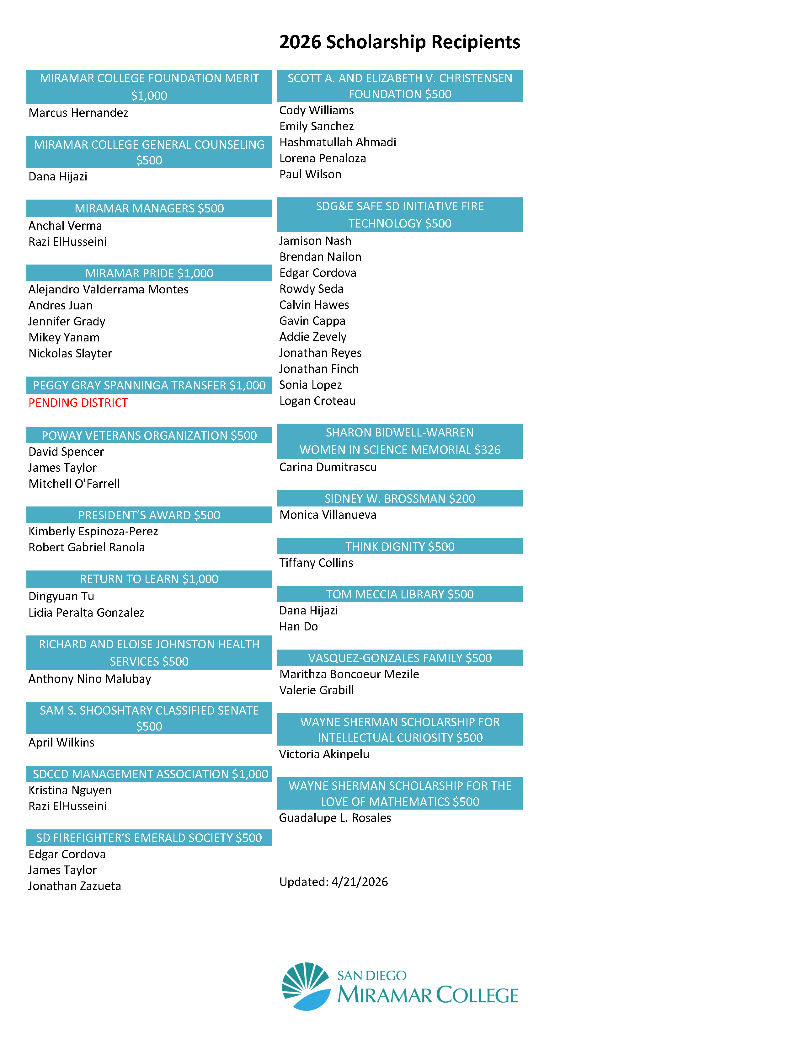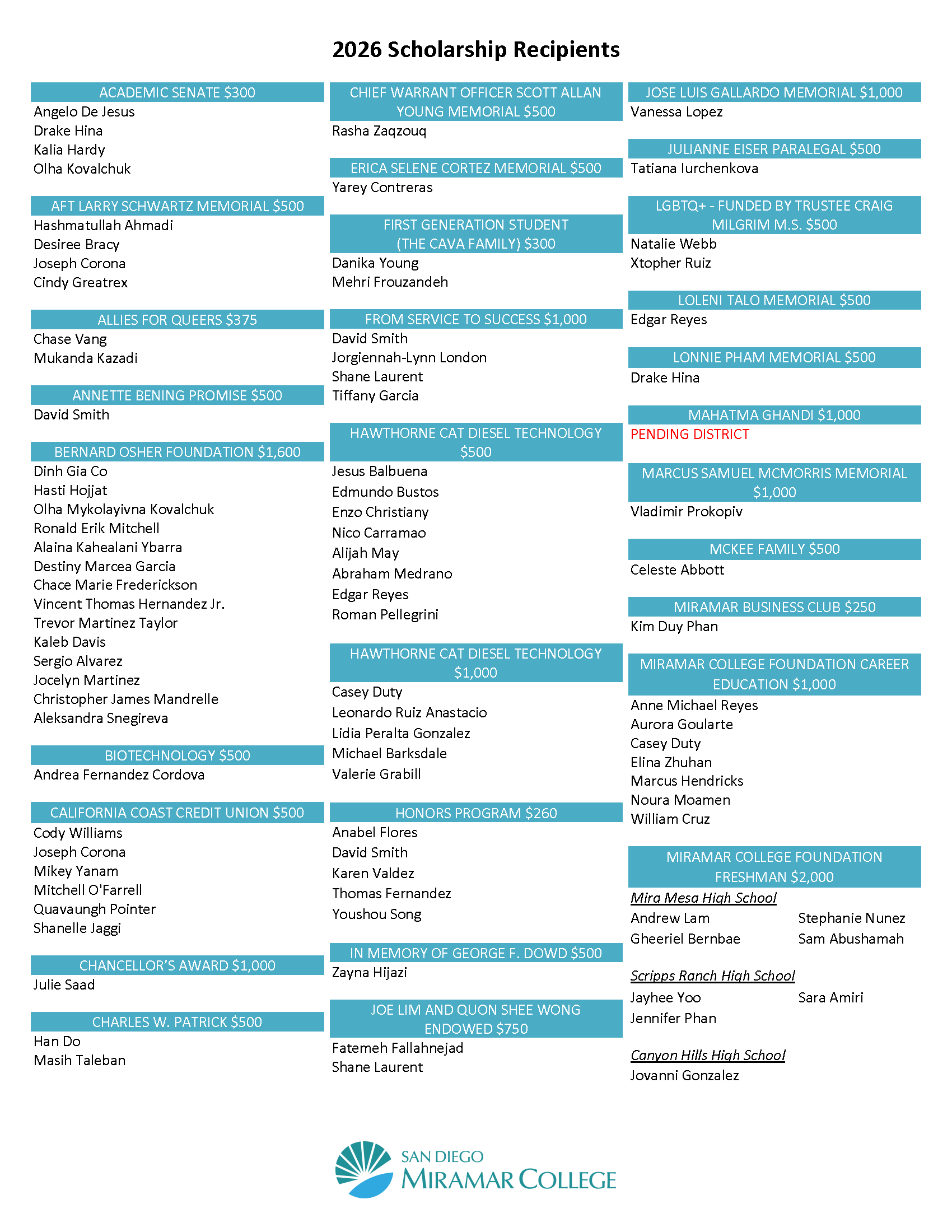 2026 Scholarship Recipients