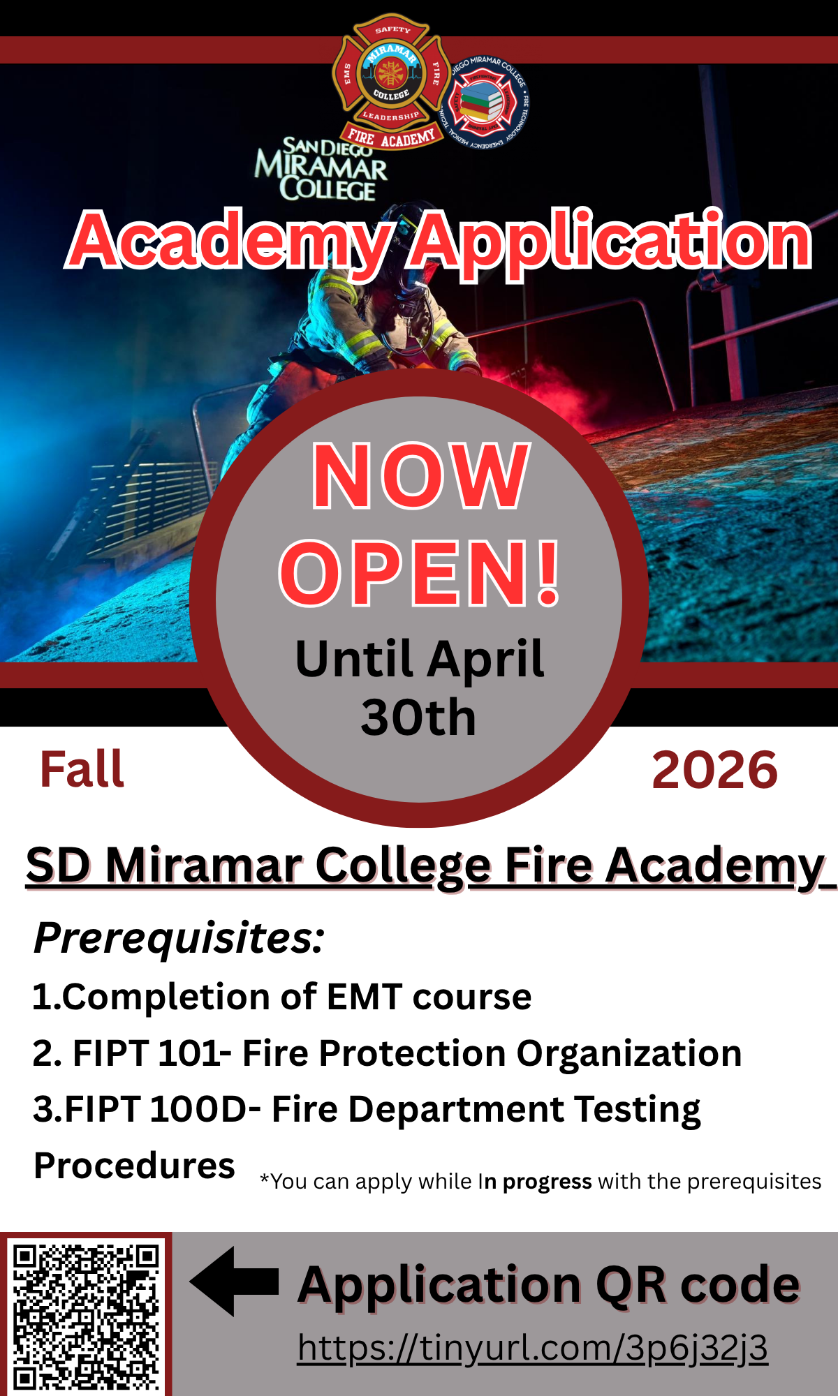 Make sure to register as a student at Miramar College first. A student ID number is required to enroll in the academy.