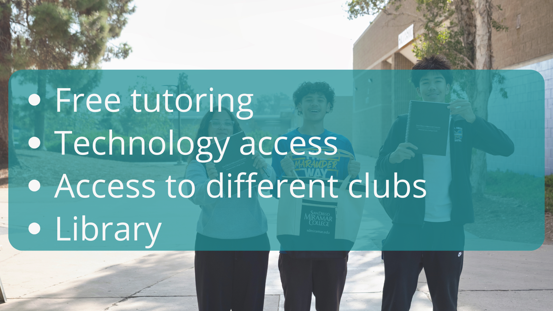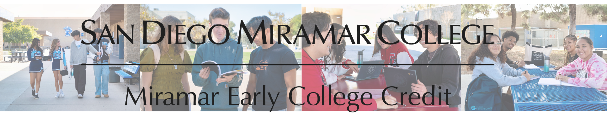 With permission from the student's high schools and parents, San Diego Miramar College offers eligible students the opportunity to earn early college credit!
